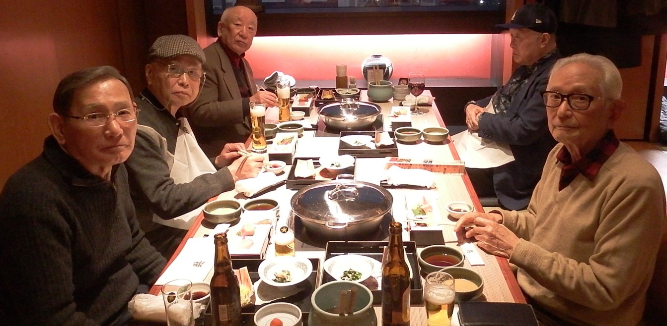 | 中村勝年 立春が過ぎ、混沌とした日本の政局も先日の衆院選で一段落し落ち着きを取りもどしました。 ワンツー会2月例会は2月12日(木)18:00~「しゃぶ禅」で行われました。 参加者はいつもの常連、 吉里、白石、奥、小野、木下、佐藤、瀬口、長田、原、中村の10名。 鍋をつつきながら、予定時間を30分もオーバーしましたが、話題はやはり衆院選同様、 多岐にわたる経済問題が主でした。 寒さも一進一退を繰り返しながら、暖かい春が来ることでしょう。 節分は終わりましたが、小生の拙文は続きます。 (奉行拍手 パチパチ!) |